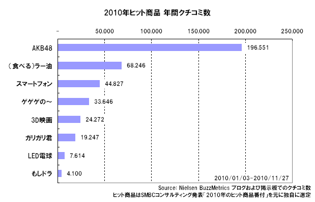 ■ヒット商品では「AKB48」に関するクチコミが圧倒、ラー油もおおきな話題に